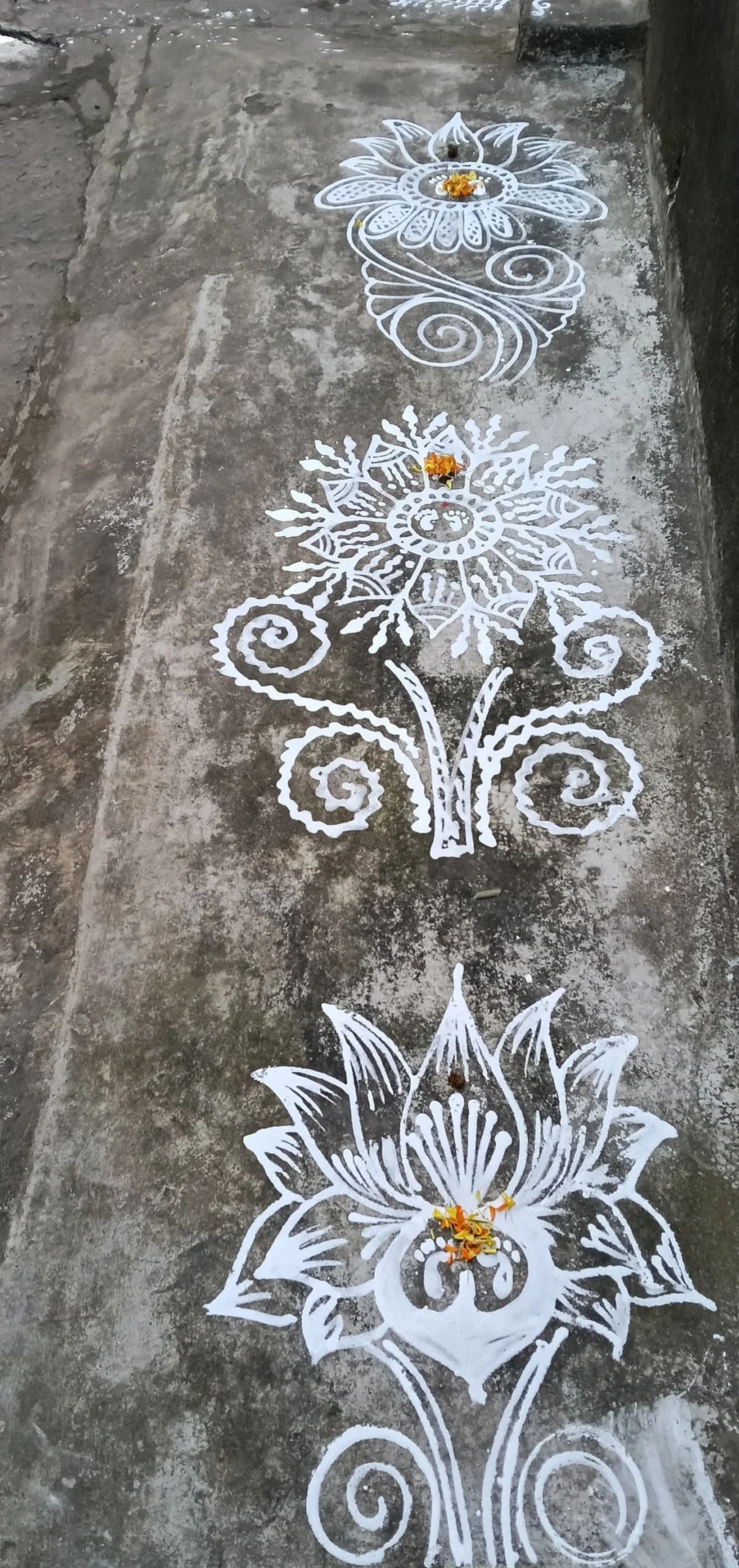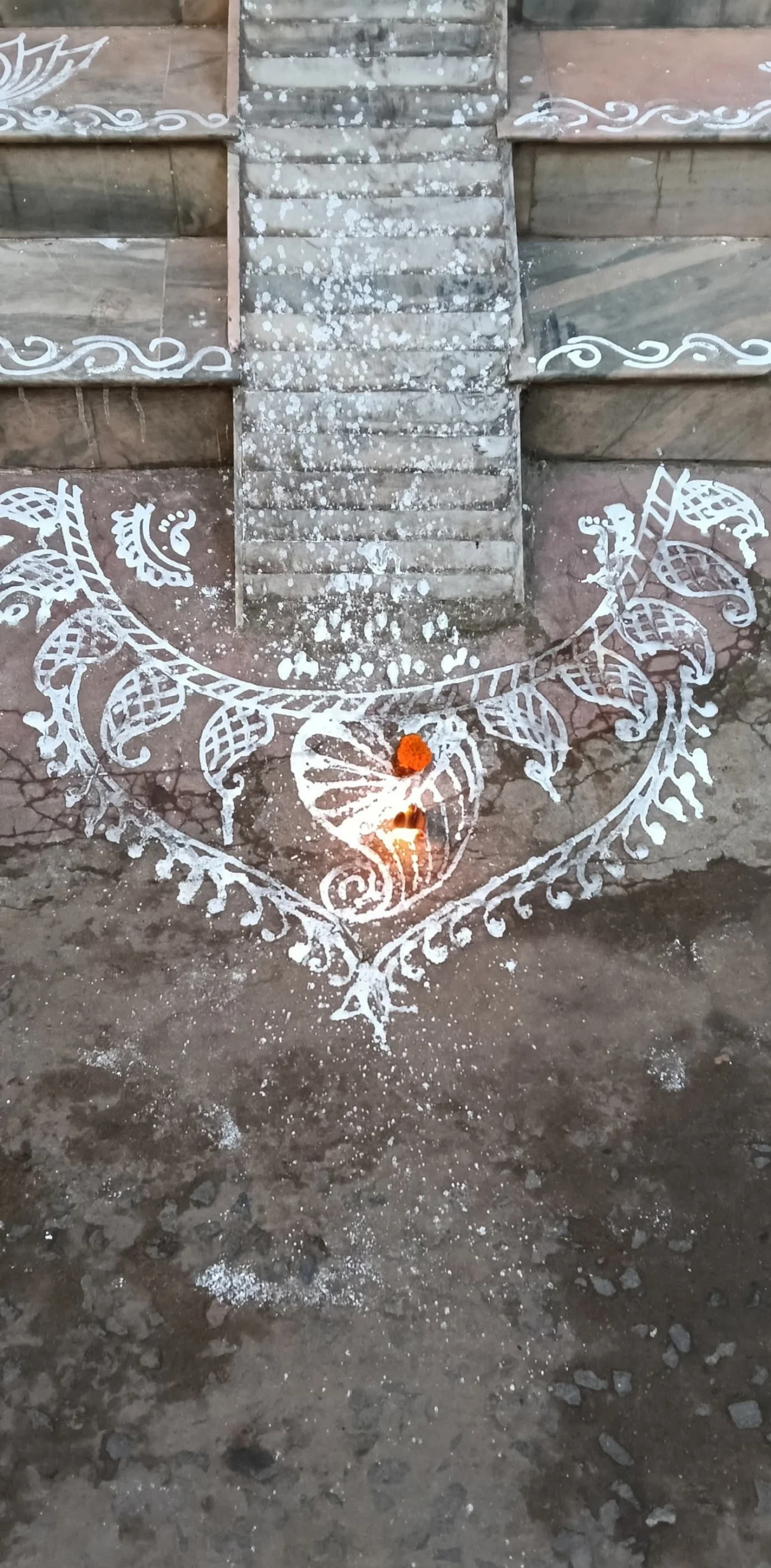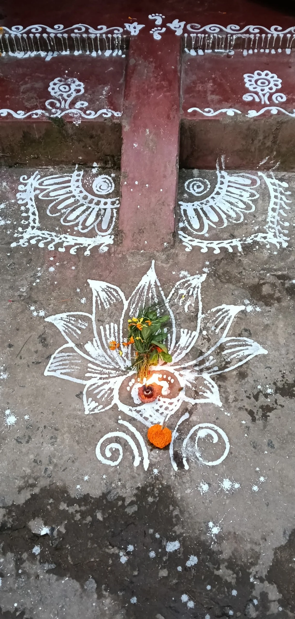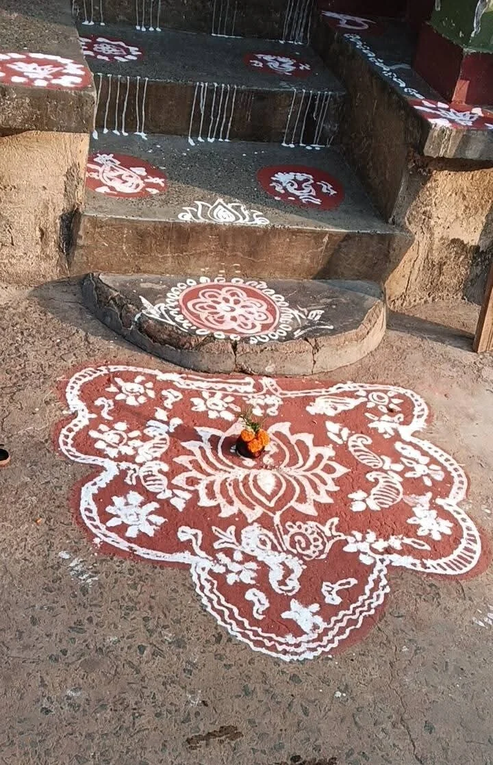 Goddess Lakshmi is related with virtue, opulence, excellence and promise. Her footprints connote an unadulterated and purified space . The drawings of Lakshmi feet liberates the home from negative energies. It is believed that drawings of Goddess Lakshmi feet in the entrance brings glory and prosperity to the householder.