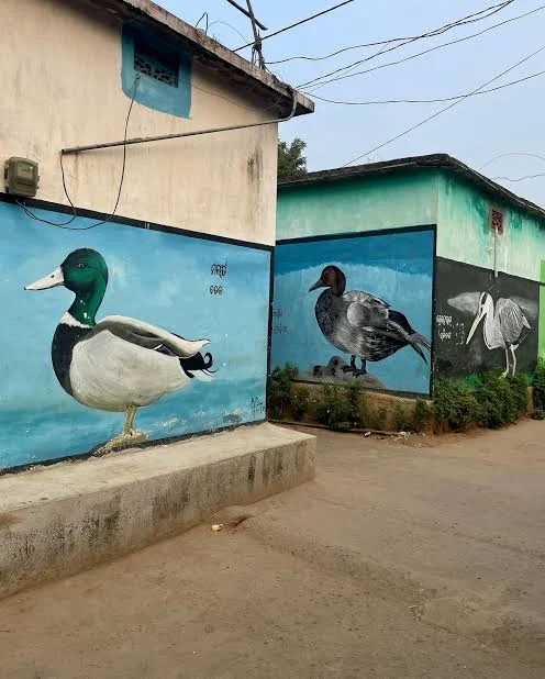 But apart from Chilika, there is another place in Odisha, where birds can feel completely safe and get plenty of foods as well. Gobindpur is the first official village which has been given the moniker “India’s First Birds Village”. Gobindpur is a small village under Bungapali panchayat of Ambabhana block of Bargarh district. The village is surrounded by dense mountain forests along with the Mahanadi reservoir. This village is full of natural beauty as it falls under the Lakhanpur Wildlife Range. This village has been made pollution-free for millions of birds. Ramgarh hill is in the east of the village , Garjan hill in the south and the Hirakud reservoir is located on the north-west of Gobindpur. The soil of this area is very fertile because of it’s strategic location on the banks of the Mahanadi River. Various types of vegetables are grown here. Before entering the village, one will first see the the temple of the presiding deity “Garjanpat”. Almost every housewall in the village ” Gobindpur ” has pictures of various birds from India and abroad, including pictures and names of some wild animals. The main objective behind this wall paintings is to bring awareness about the necessity of bird protection in the minds of the guests coming to the village as well as the villagers. Every morning and evening, one can hear the chirping of various species of birds. The sweet call of the peacocks in the nearby forest is captivating. More than any other day of the year, especially during the winter season, visiting birds from Siberia, Mangolia, Central Asia, Russia, China, Caspian Sea, etc., migrate in large numbers to settle in the forests adjacent to the Mahanadi reservoir. Due to its favorable environment, conducive atmosphere and climate, availability of plenty of foods, safety ensured by the local people, consistency of birds arrival in large numbers , this area has been declared as a Ramsar site for watching exotic birds.